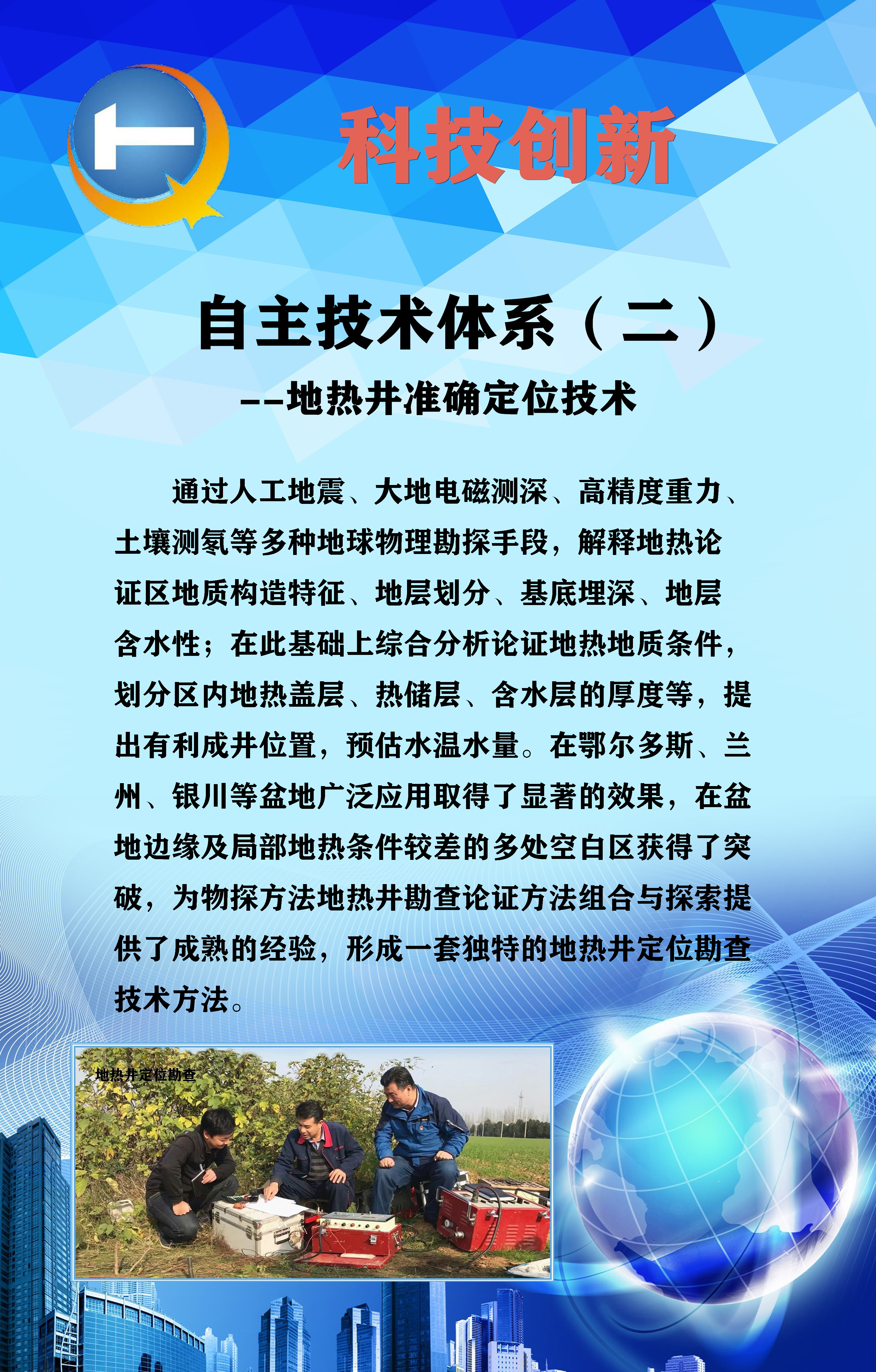 ? ? 目前,通過自主研發和項目實施中不斷總結與探索,初步形成了四項具有自主性、實踐性和不可復制性的技術體系,為物化探隊開拓新領域、新市場提供了技術保障。