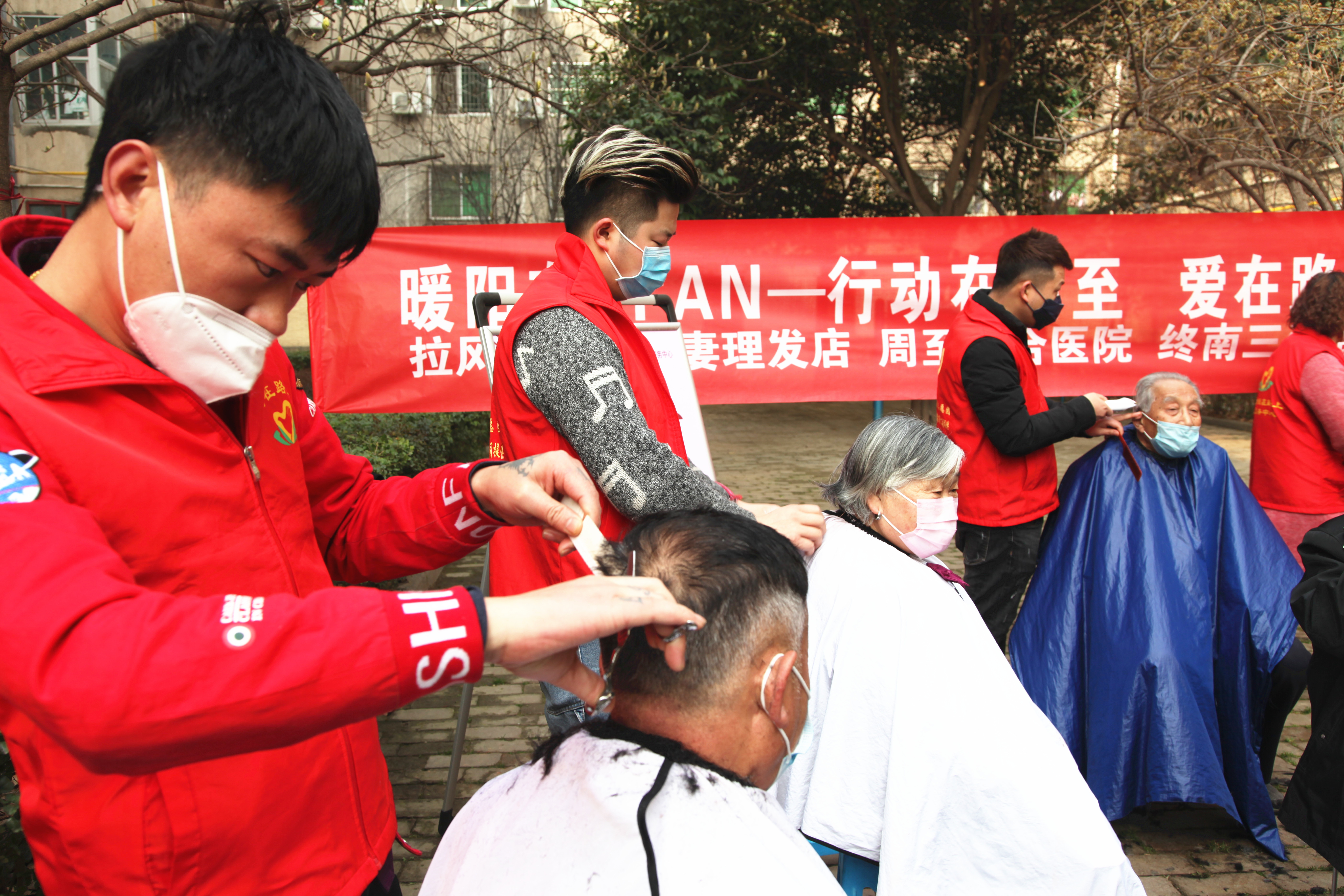 ? ? 5日上午10時,基地家屬院打破了往日的寧靜,志愿服務活動火熱進行,職工及家屬們帶著口罩,在志愿者的引導下,有序排隊,熱鬧異常。“叔叔,您的血壓不高,在標準范圍呢,放心吧。” “阿姨,您別亂動,理發馬上就好了……”本次志愿者服務免費為職工家屬理發、診療、心理咨詢、送新鮮蔬菜、為空巢老人送蛋糕等,活動獲得了職工家屬的頻頻稱贊。