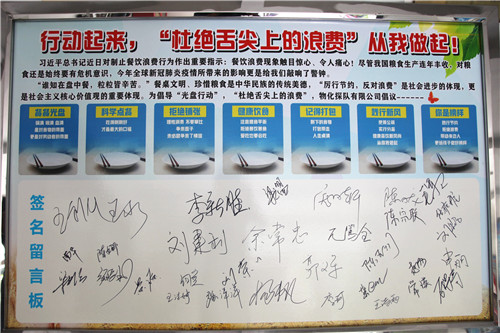 ??? 隨后,班子成員帶頭,全體黨員在“積極行動起來,'杜絕舌尖上的浪費'從我做起!”的簽名留言宣傳展板上紛紛簽上了自己的名字。通過此次活動,進一步在全體黨員干部、職工中增強了勤儉節約、反對浪費的思想意識。大家紛紛表示,從我做起、從點滴做起,做到珍惜糧食、拒絕浪費,自覺作勤儉節約風尚的傳播者、實踐者和示范者,以實際行動為建設節約型社會做出積極貢獻?!?/span>
