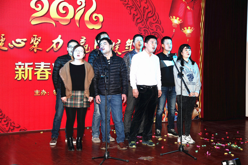 ??? 伴隨著炫動(dòng)的燈光,激情的音樂,晚會(huì)在一支紅紅火火的“開門紅”舞蹈中拉開序幕,來自機(jī)關(guān)各科室的近十名青年職工,用熱辣動(dòng)感的舞步瞬間沸騰了晚會(huì)現(xiàn)場(chǎng),昭示著物化探隊(duì)天天開門紅,歡快的旋律、熱情的吶喊,讓晚會(huì)變成了一個(gè)“歡樂的海洋”,接下來的詩朗誦“新春頌”,表演熱情洋溢,共同祝愿物化探事業(yè)永遠(yuǎn)與春天同行!鏗鏘有力的合唱《勘探隊(duì)員之歌》,唱出了物化探隊(duì)職工為了地質(zhì)事業(yè)砥礪奮進(jìn)、無私的奉獻(xiàn)的崇高精神。女聲獨(dú)唱《謝謝你讓我這么愛你》溫情浪漫,別出心裁的《相信自己》亮出青春、堅(jiān)定信心,相信2016我們一定能贏,把晚會(huì)推向高潮。白林科為晚會(huì)助興演唱了《男人哭吧不是罪》,激情的演唱博得了在場(chǎng)觀眾的陣陣掌聲。《父親的草原母親的河》表達(dá)了物化探人連續(xù)8年奮戰(zhàn)在內(nèi)蒙古巴丹吉林沙漠的深厚感情,他們真正是地質(zhì)一線的《真心英雄》,《我的好兄弟》唱出了物化探隊(duì)青年人的地質(zhì)情、戰(zhàn)友情,《北京頌歌》象征著團(tuán)結(jié)、凝聚著力量。《眾人劃槳開大船》表現(xiàn)了物化探人齊心合力、堅(jiān)定信心、開拓創(chuàng)新,贏戰(zhàn)2016 ,走向希望,并將演出再次推向高潮,更是點(diǎn)燃了現(xiàn)場(chǎng)干部職工的熱情,激起了一浪高過一浪的喝彩與歡呼,也給廣大干部職工留下了一段難忘的歡樂時(shí)光。晚會(huì)結(jié)束后,白林科、王新坪、賀志銀為獲獎(jiǎng)節(jié)目進(jìn)行了現(xiàn)場(chǎng)頒獎(jiǎng)。
