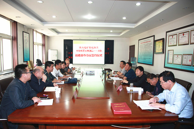 ? ? 簽約儀式上,物化探隊隊長王新坪和中陜核工業集團二一一大隊主持工作的副隊長郭科鋒分別介紹了雙方單位的基本情況和取得的業績成果,以及未來發展規劃。雙方就戰略協議的簽訂在合作領域和合作方式上達成十點共識: