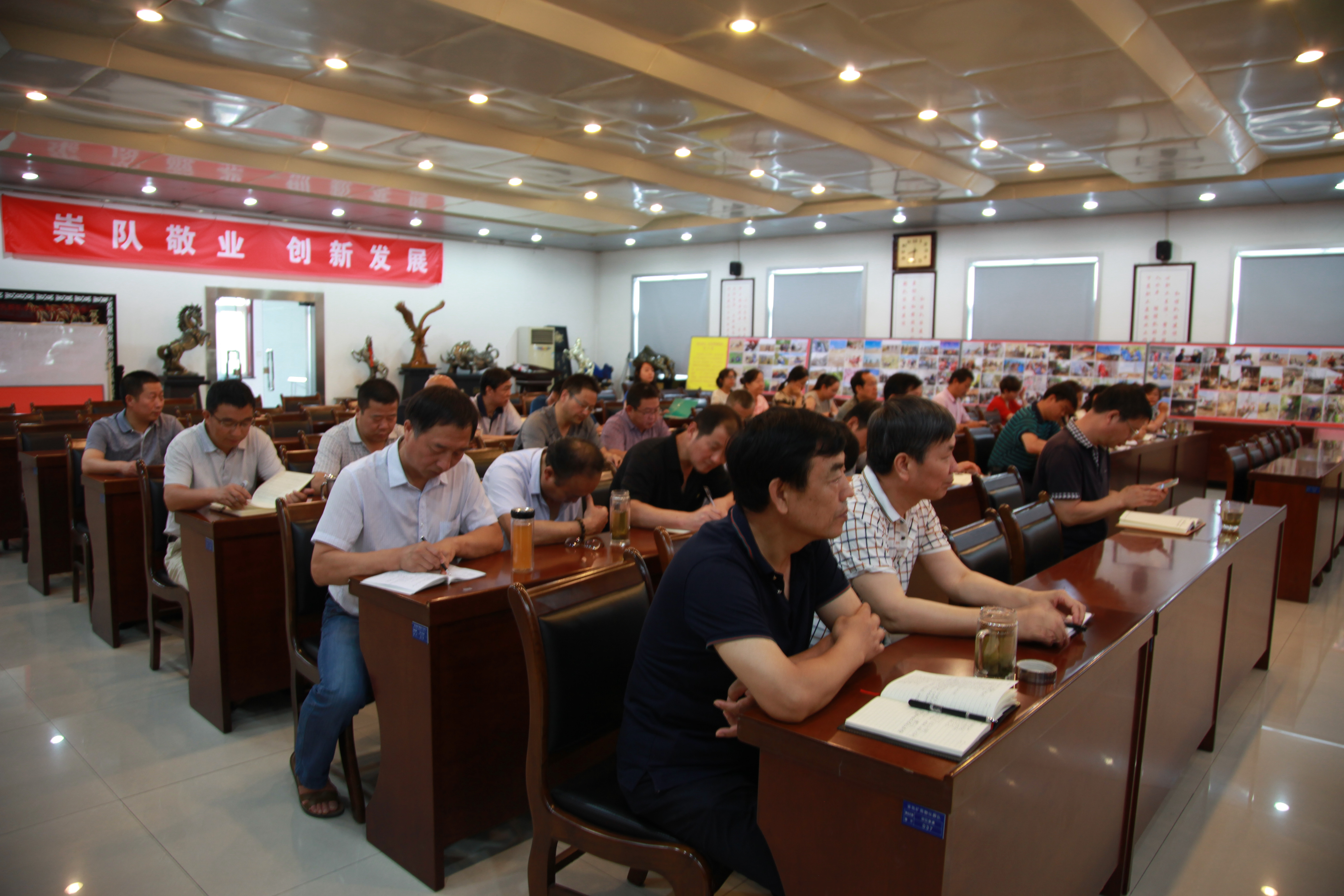 ? ? 6月30日上午,物化探隊在隊部六樓會議室召開紀念建黨96周年暨“七一”表彰大會,黨委書記、隊長王新坪同志作重要講話。隊部全體黨員近50人參加了會議。