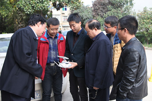座談會后,單金忠一行受邀參觀了我隊“地災中心”儀器設備,并觀看了無人機飛行勘測表演。
