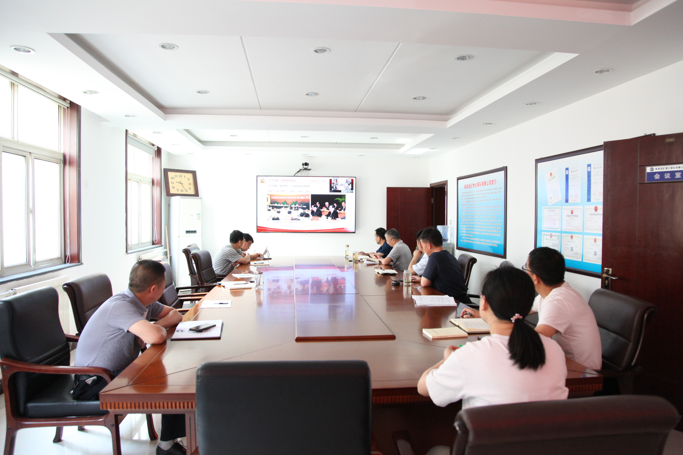 ? ? 6月10日上午,物化探隊有限公司班子成員和支部書記參加了省國資委黨委黨史學習教育領導小組舉辦的“黨委書記講百年黨史”系列黨課宣講報告會(第八講)。省國資委黨委副書記、黨史學習教育領導小組副組長郁偉主持會議并講話。陜西旅游集團有限公司黨委副書記、董事陳小軍以《堅持開門搞建設,全面推向新世紀》為題,為黨員干部作宣講報告。報告會以視頻會形式在二樓會議室召開。?